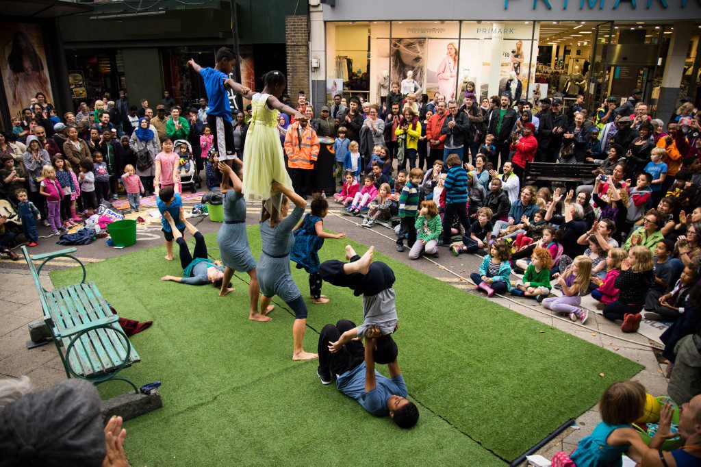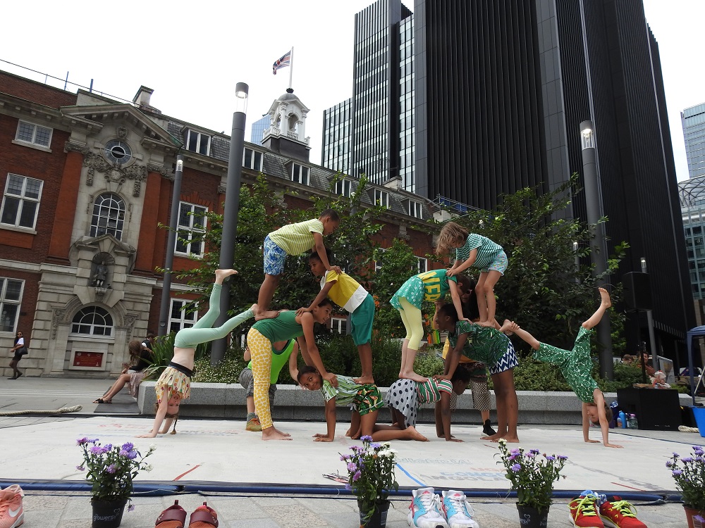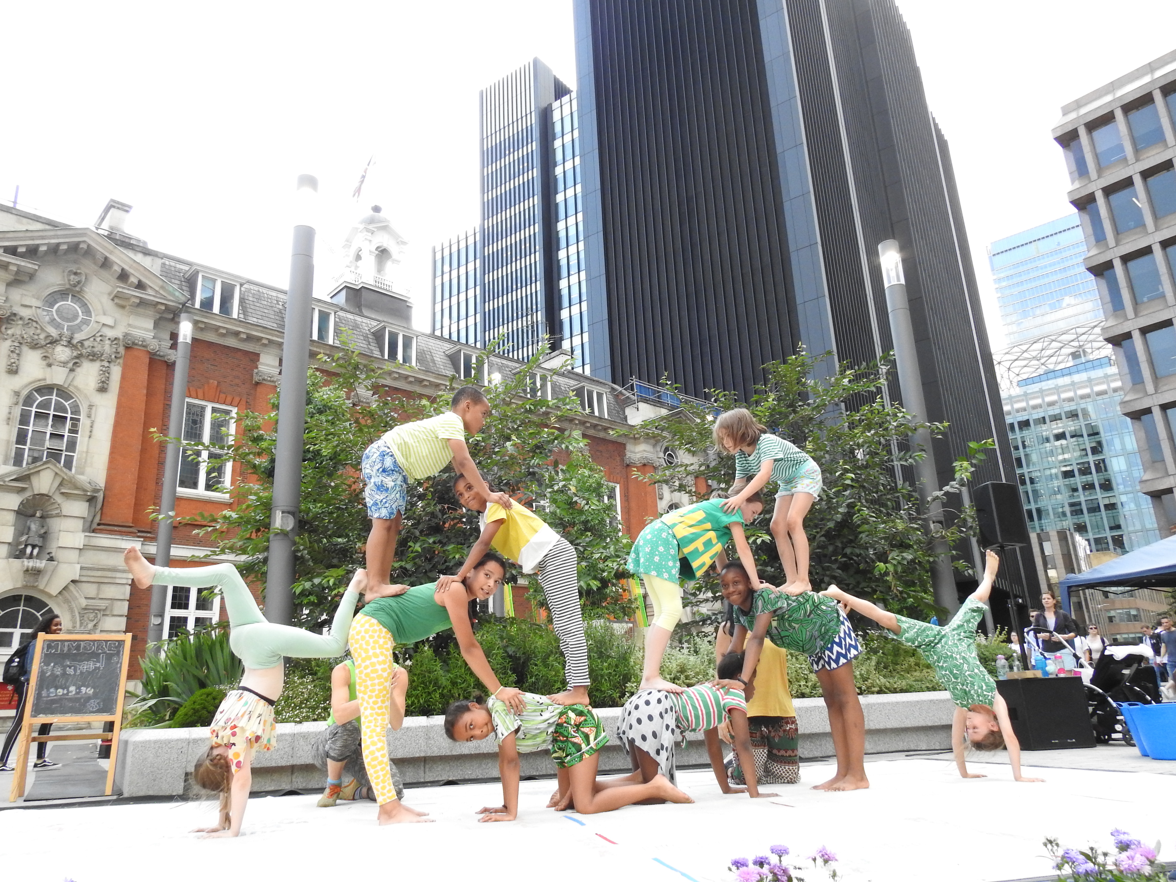 Skyline, a performance in Aldgate Square as part of Fantastic Feats Festival, and supported by The City of London Corporation